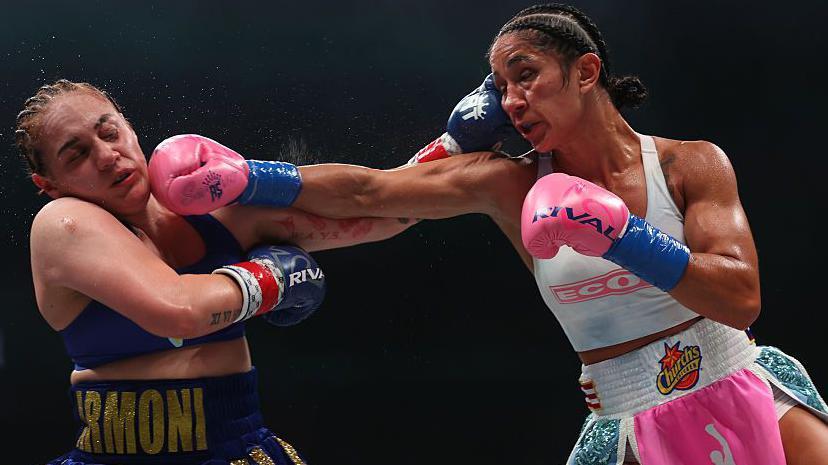 Um Mark-up Serrano deu as boas-vindas a uma luta potencial de unificação contra a campeã dos leves do WBC, Tiara Brown, ou a detentora do título do IBF, Nina Meine (Getty Images)