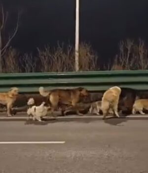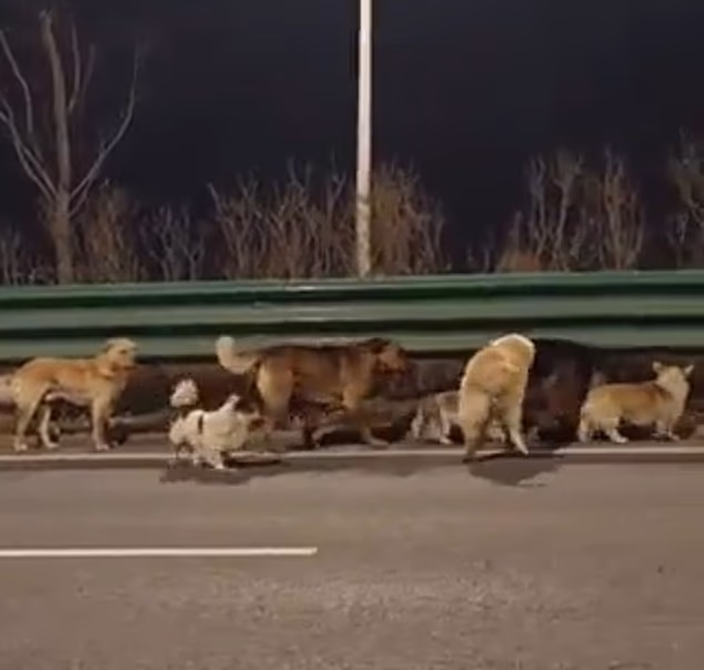 Imagens virais mostram animais de todos os tamanhos formando “bandos de irmãos” e percorrendo uma rodovia movimentada em Changchun, província de Jilin.