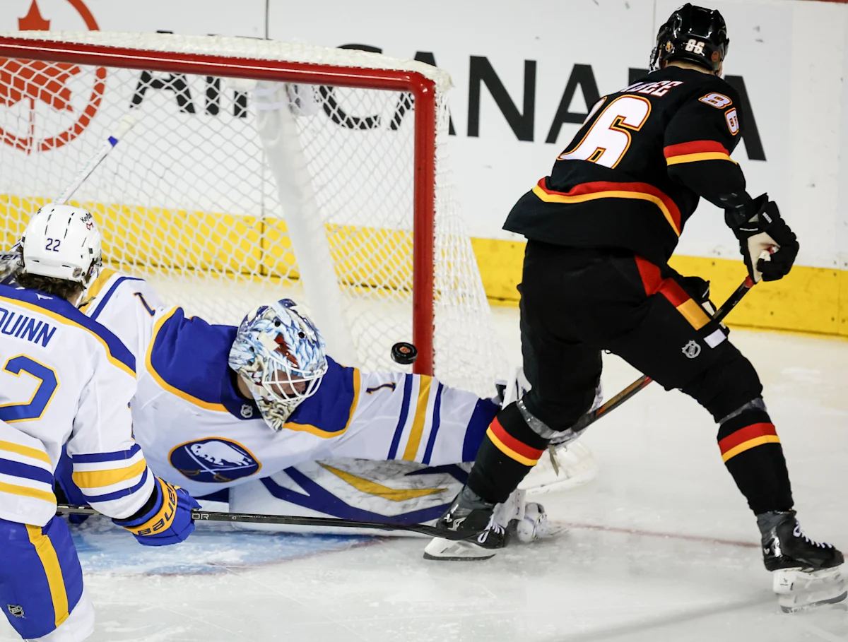 Apesar de ser o time com menor pontuação da NHL, com média de 2,48 gols por jogo, os Flames marcaram seis ou mais gols nesta temporada – ambos contra os Sabres. Calgary venceu por 6 a 2 em Buffalo em 19 de novembro.