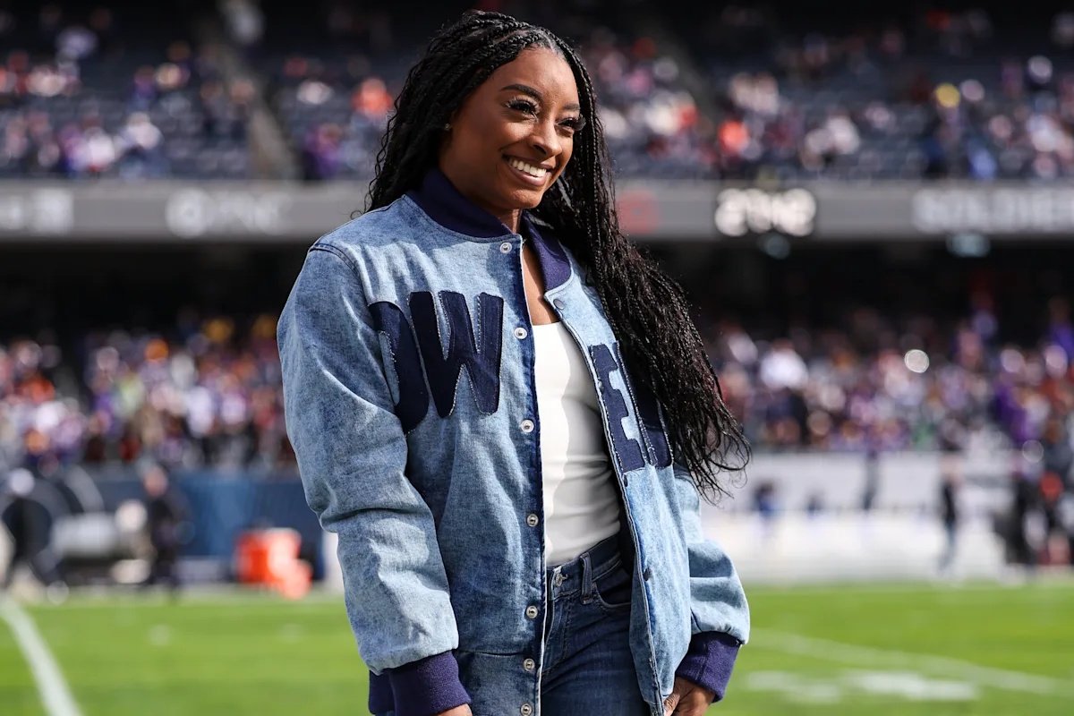 Biles estava em terra firme para apoiar Jonathan Ovens na defesa de seu marido, Chicago Bears, enquanto ela lutava com os comandantes de Washington durante a semana. Foi um jogo dramático que envolveu o field-go-go de último segundo do recém-exibido Bears Kicker Jack Moody.