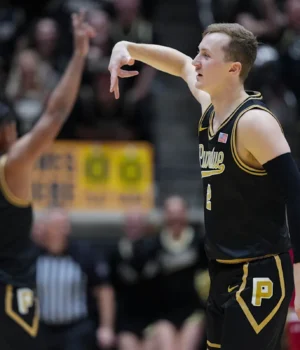 Fletcher Lauer e Omer Meyer marcaram 18 pontos cada, com Lauer acertando 5 de 5 em campo, acertando quatro de seus 3 pontos e quatro lances livres no que poderia ser a final de Indiana para os três titulares seniores de Purdue – Coffman-Wren, Smith e Lauer. A vitória veio depois de três dias Purdue (22-5, 12-4 Big Ten) perdeu em casa. Melhor em Michigan.