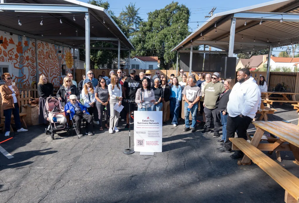 Sobreviventes da Eaton Fire Survivors Network reuniram-se no Good Neighbor Bar de Altadena, onde repetiram a reportagem do New York Times, que detalhava como o acordo entre Lara e as seguradoras mudou o cenário dos seguros. Com o trabalho de Lara chamando, eles pediram ajuda imediata a Newsom enquanto navegavam pela recuperação e enfrentavam contratempos das seguradoras.