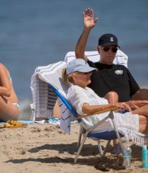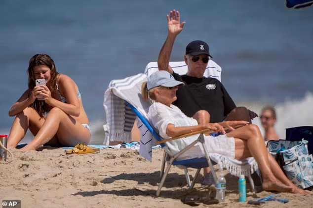 O ex -presidente Joe Biden (à direita) está na praia de Delawire, onde planeja criar sua biblioteca de presidente