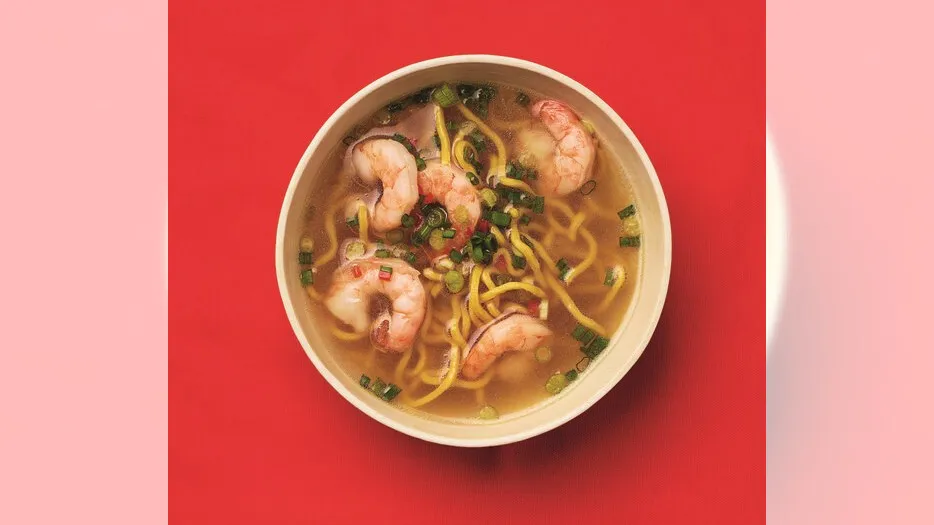 Sopa Quente e Azeda com Camarão e Macarrão