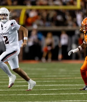 Sorsby completou 20 de 29 passes para 270 jardas e Cyrus Allen pegou dois passes para touchdown para Cincinnati (6-1, 4-0 Big 12). Eles marcaram um ataque que ganhou 427 jardas.