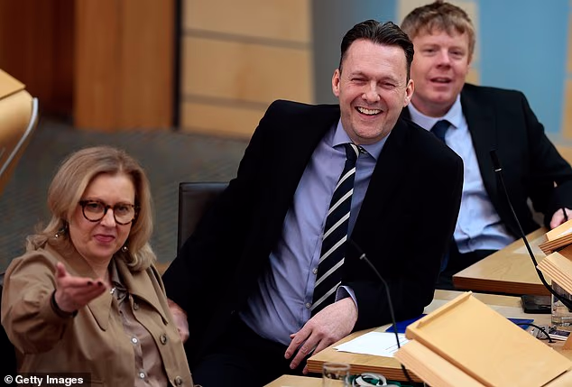 Um sorridente Russell Findlay no FMQs na quarta-feira, onde confrontou o primeiro-ministro sobre o crescente projeto de lei de benefícios da Escócia