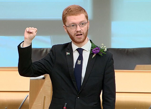 Ross Greer tem a única qualificação para ser um líder do partido político: quando ele fala, sua mão pula na frente dele como esperando que um secador de mão invisível seja lançado.