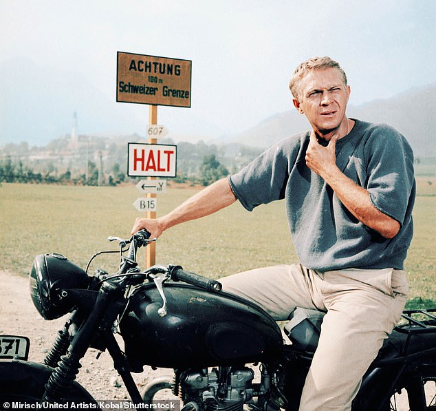 Steve McQueen como capitão Virgil Hilts em uma cena em Great Eskep