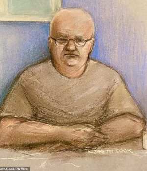 Esboço de um artista judicial de Steve Wright aparecendo no Tribunal de Magistrados de Ipswich em junho de 2024