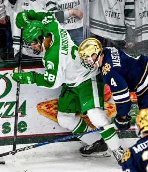 Na noite de quinta-feira, o Michigan State derrotou o Notre Dame no primeiro jogo de uma série de dois jogos. 4-2. Os Spartans conseguiram os tão necessários três pontos dos Fighting Irish.