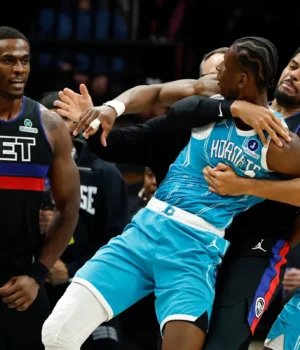 Os atacantes do Hornets, Miles Bridges e Moussa Diabet, foram suspensos por quatro jogos por brigas e, para aumentar a polêmica, o pivô do Pistons, Jalen Duren, recebeu dois jogos por briga e início de briga, anunciou a liga.