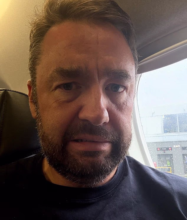 O ator de comédia Jason Manford compartilhou os momentos horríveis de sua aeronave de lado para o lado e a tempestade de blaster foi forçada a cancelar o patamar no ar no ar