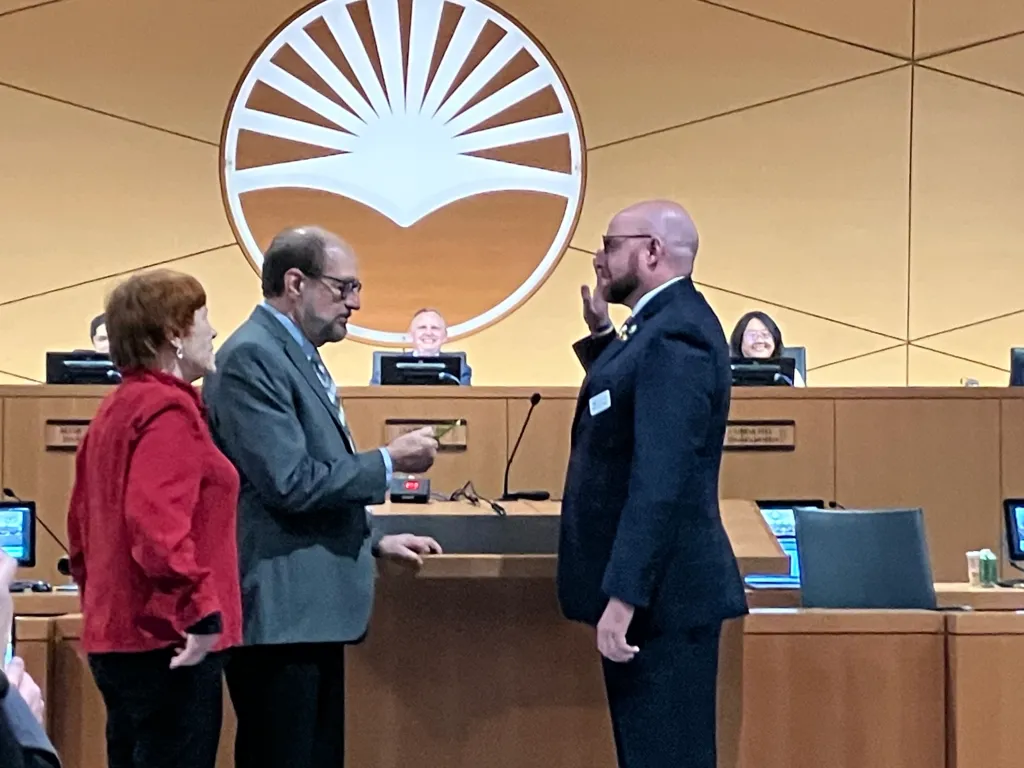 “Quero agradecer aos meus colegas por acreditarem em mim… esse juramento é uma coisa pesada”, disse Mehlinger. “Isso significa que trabalharemos para construir comunidades justas, pacíficas, seguras, prósperas e livres… Não consigo imaginar um grupo de pessoas como as que encontrarei, ou um lugar melhor para fazer isso do que aqui em Sunnyvale. Obrigado a todos, vamos trabalhar.”