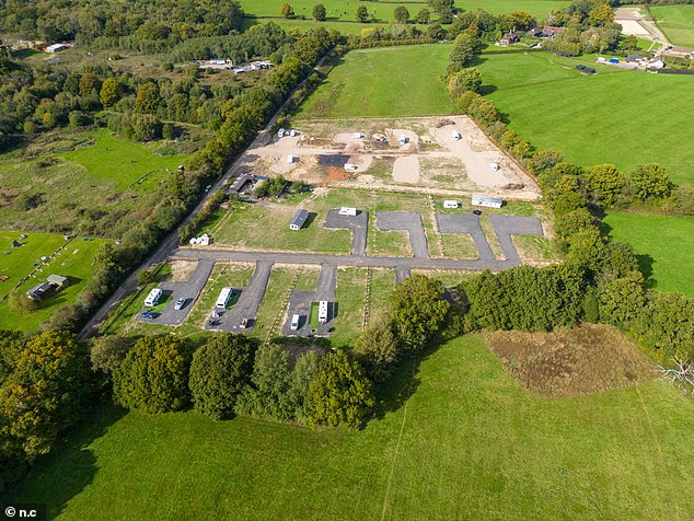 Quando o Daily Mail visitou o local, os viajantes estavam montando um amplo parque de caravanas, rasgando o chão e colocando-se duro com uma dúzia de arremesso para o tampa.