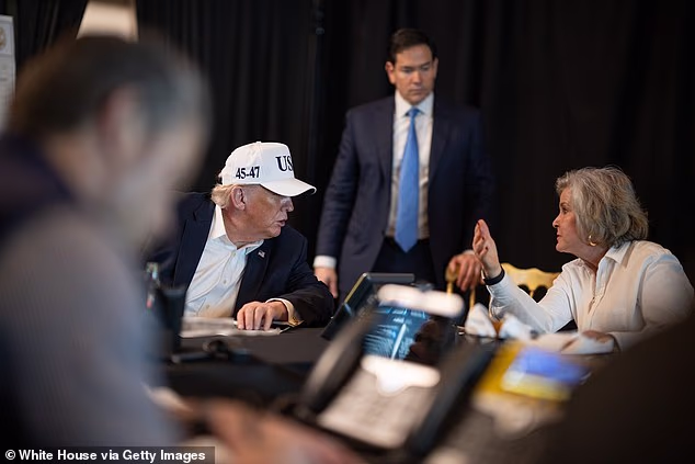 Donald Trump e Susie Wiles na Sala de Situação em Mar-a-Lago no sábado, enquanto os EUA e Israel lançam ataques ao Irã.