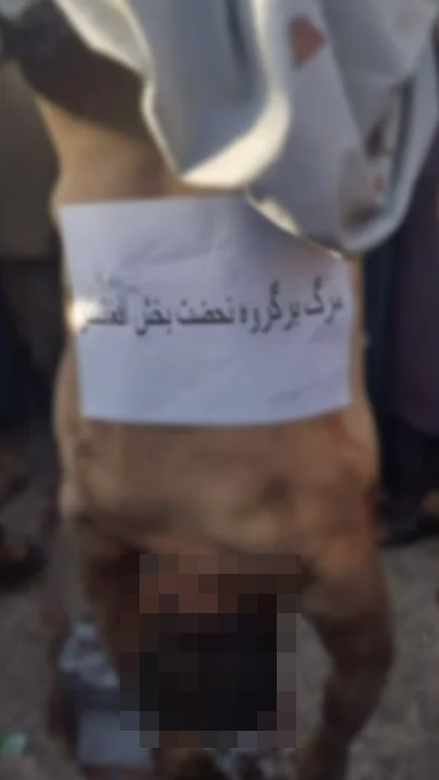 Antes da execução, em 22 de agosto, a oposição assumiu a responsabilidade pelo ataque. Uma placa dizia: ‘Morte do grupo Nahjat Azadi-Bakhsh Afeganistão supostamente preso ao peito de um homem não identificado.
