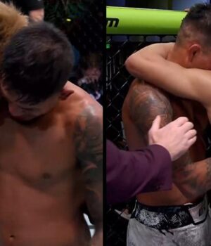 Embora ele tenha conquistado seu quarto bônus no UFC, ele não sofreu muito bem o dano.