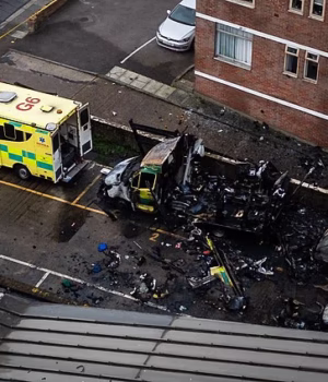 Os botijões de oxigênio da ambulância explodiram por volta de 1h45, explodindo janelas da sinagoga e várias casas próximas.