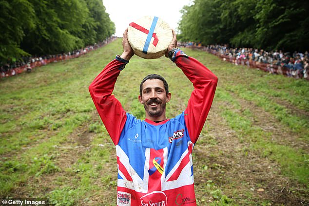 Chris Anderson, de Brockworth, mantém seu queijo prêmio depois de vencer três corridas em 20