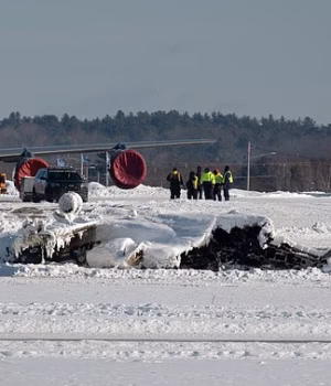 O Bombardier CL-600-2B16 Challenger 650 capotou na decolagem do Aeroporto Internacional de Bangor, no Maine, às 19h45 de domingo. Os destroços ainda estavam cobertos de neve na manhã de quarta-feira e os corpos estavam congelados dentro