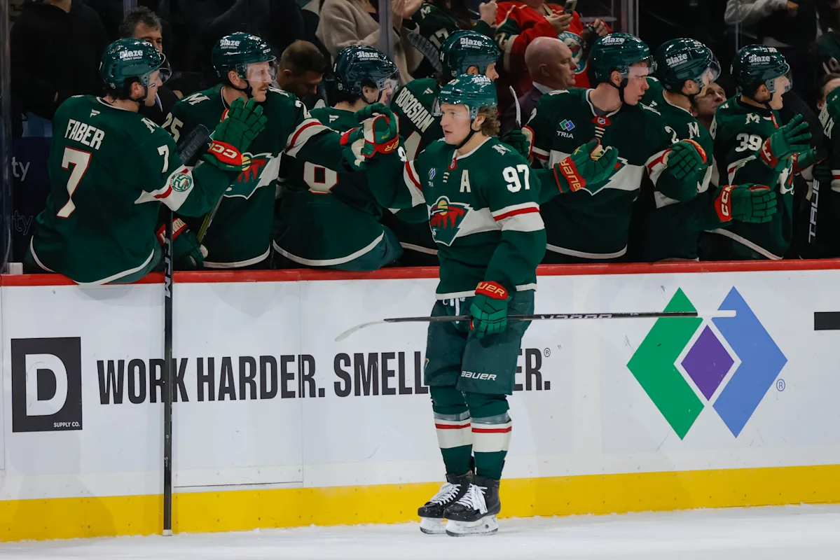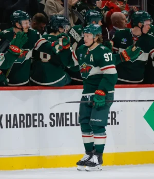 Kaprizov empatou o jogo aos 12 minutos do segundo período com seu 200º gol na carreira, caindo na abertura para desviar um passe de Ziv Buiam. O 114º home run da carreira de Kaprizov estabeleceu um recorde da franquia.