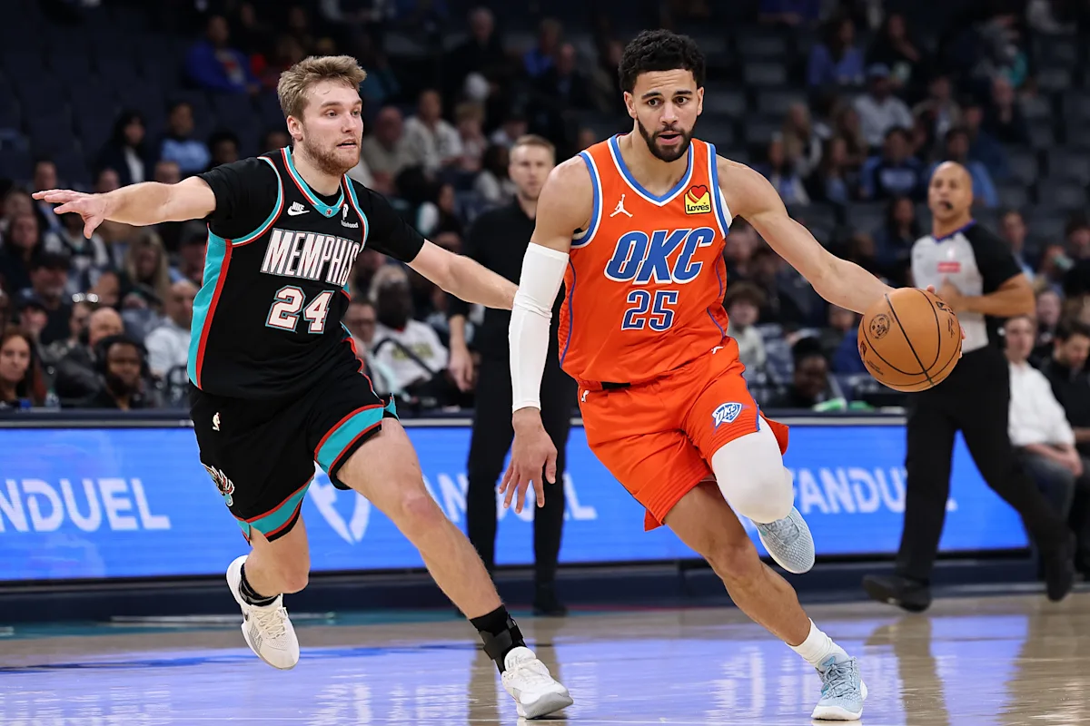 Nos últimos três minutos e meio do jogo de sexta-feira à noite em Memphis, o Oklahoma City Thunder superou o Grizzlies por 14-2, completando uma recuperação de 21 pontos sem o MVP da liga Shai Gilgeous-Alexander e o pivô Chet Holmgren.