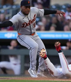 Anthony Banda foi o próximo apaziguador dos Twins no sétimo. Javier Baez conseguiu um single inicial. Spencer Torkelson entrou para dar um beliscão em Keith e fez pouco mais do que caminhar até a base e depois voltar para o banco de reservas. Kevin McGonigle estava solteiro na época. Uma dobradinha de Gleyber Torres marcou Baez e McGonigle. Hora da montagem? Claro! Houve um pequeno atraso em campo enquanto os árbitros avaliavam se uma dobradinha de Torres havia sido arquivada, mas como ninguém em campo avisou sobre isso, a bola foi considerada viva e ambas as corridas contaram. Jahmai Jones substituiu Carpenter e um arremesso selvagem de Banda permitiu que Torres passasse para o terceiro lugar. Riley Green então escolheu para marcar Torres.