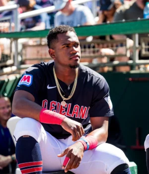 GOODYEAR, ARIZONA – 11 DE MARÇO: Angel Martinez # 79 do Cleveland Guardians senta-se no banco de reservas antes de um jogo de treinamento de primavera contra o Los Angeles Dodgers no Goodyear Ballpark em 11 de março de 2024 em Goodyear, Arizona. (Foto de John E. Moore III/Getty Images) | Imagens Getty