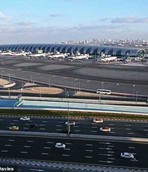 A polícia de Dubai espionou um grupo privado de WhatsApp para prender um funcionário de uma companhia aérea que compartilhou fotos de um prédio danificado na crise do Oriente Médio (Foto do Aeroporto Internacional de Dubai)
