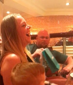 Amanda Bratton, 46, estava jantando com seu namorado Gary em um navio da Carnival Cruise Line.