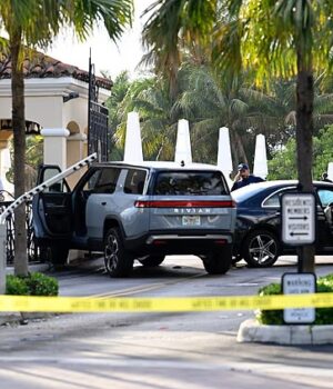 Um carro bateu na entrada protegida do ultra-exclusivo ‘Billionaire Bunker’ da Flórida na sexta-feira, quebrando portões de segurança e bloqueando a única ponte para Indian Creek Island.