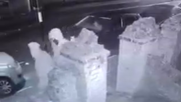 Imagens de CCTV mostram o agressor brandindo uma grande lâmina enquanto dois espectadores se aproximam por trás.