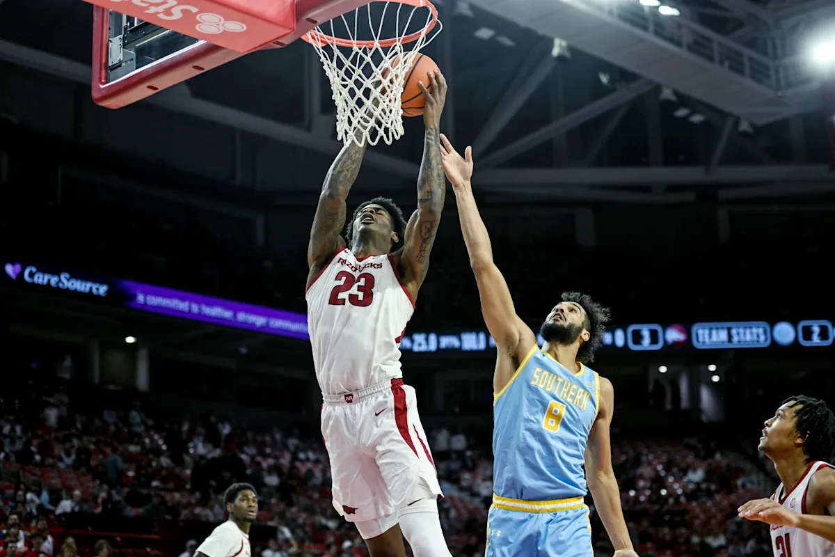 Arkansas superou Southern por 32-12 em pontos de contra-ataque e 48-28 na pintura. Em um intervalo de cerca de nove minutos no segundo tempo, o Arkansas marcou 24 pontos consecutivos em gols na borda.