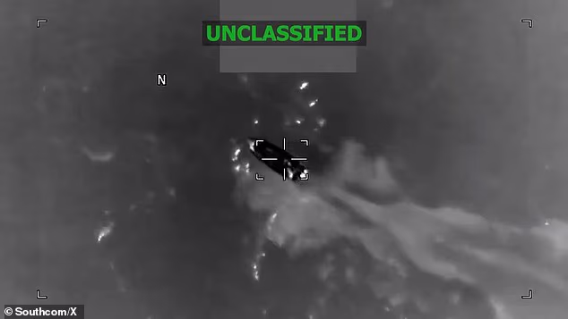 O Comando Sul dos EUA e a Força-Tarefa Conjunta Southern Spear conduziram a operação na sexta-feira, atacando um barco suspeito de terrorismo antidrogas em um local não revelado.