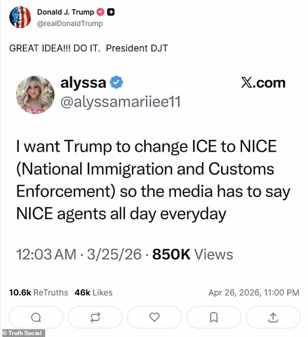 O presidente Trump deu o seu selo de aprovação às piadas dos influenciadores conservadores sobre nomear a Alfândega e Fiscalização da Imigração dos EUA (ICE) apenas para irritar os membros da mídia.