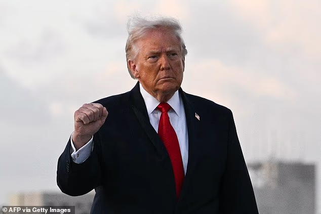 O presidente dos EUA, Donald Trump, cerra os punhos ao chegar ao Aeroporto Internacional de Miami, em Miami, em 11 de abril de 2026.