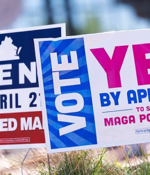 Um pôster para o esforço de redistritamento da Virgínia, exigindo que os eleitores votem “sim” em uma proposta de emenda constitucional que retiraria a responsabilidade de redistritamento de uma comissão bipartidária.
