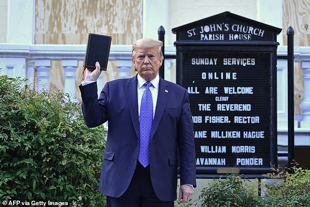 Em 2020, em meio aos protestos do Black Lives Matter, Trump caminhou até a Igreja de St. John, um quarteirão ao norte da Casa Branca – depois que os manifestantes foram inocentados com gás lacrimogêneo – e posou para uma sessão fotográfica altamente polêmica, com uma Bíblia de cabeça para baixo.