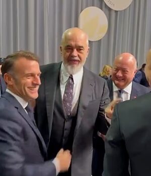O primeiro -ministro albaneses Eddie Ram foi visto invadindo a fúria simulada e disse a Macron: ‘Deveríamos pedir desculpas conosco … porque você não nos parabenizou pelo acordo de paz entre o presidente Trump Albânia e o Azerbaijão’.