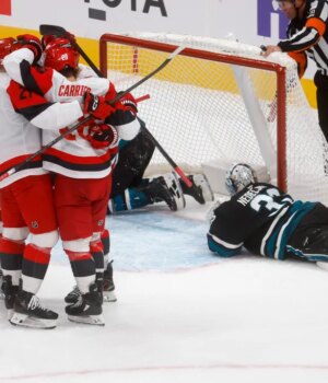 Após o primeiro período sem gols, os Sharks saíram para o resto do caminho, já que Carolina marcou mais dois no terceiro lugar no segundo tempo e 5 a 1 no centro do SAP.