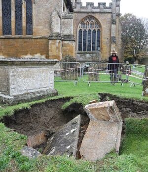 De acordo com o reverendo Paul Fillary, o sumidouro foi causado pela erosão do solo e das fundações causada por fortes chuvas ao longo do tempo.