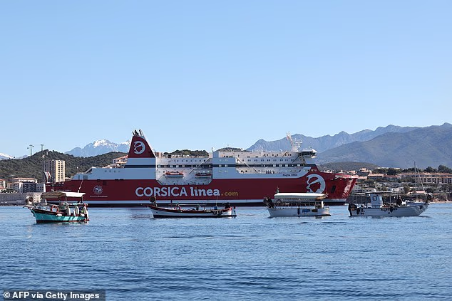 Turistas britânicos estão presos na Córsega depois que pescadores furiosos bloquearam o porto da ilha devido ao aumento dos preços do diesel. Na foto: Pescadores em Ajaccio bloquearam o acesso ao porto e forçaram a balsa Corsica Linea a atracar na baía em 7 de abril.