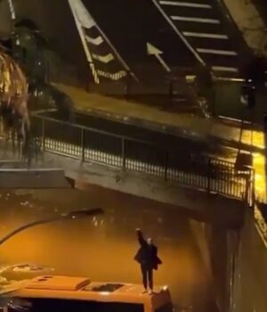 Os turistas, temendo por suas vidas, começaram a sair do microônibus pelo teto solar enquanto as águas da enchente continuavam a subir no túnel onde estavam presos enquanto ele gritava: “Socorro, socorro”.