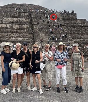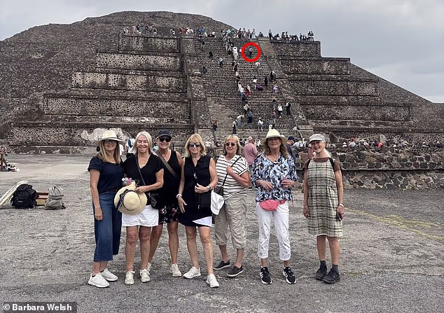 Barbara Welsh, da Colúmbia Britânica, e suas amigas estavam em sua viagem anual de meninas, visitando as pirâmides de Teotihuacan na segunda-feira, quando pararam para posar para uma foto em grupo em sua visita guiada.