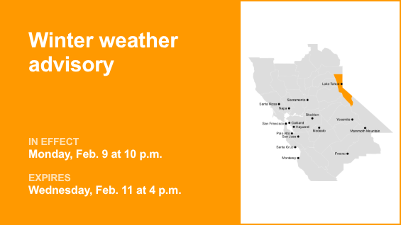 O Serviço Meteorológico Nacional emitiu um Aviso de Clima de Inverno às 11h07 de sábado para a área do Grande Lago Tahoe, das 10h de segunda-feira às 16h. Quarta-feira, 11 de fevereiro.