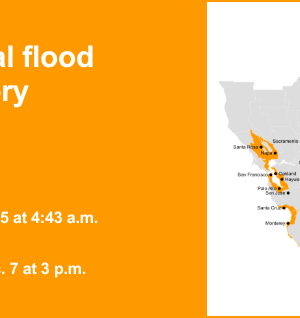 “A inundação de até 1,4 pés acima do nível do solo é possível em áreas baixas perto da costa e cursos de água das marés”, de acordo com NWS São Francisco CA. A maré alta do medidor de marés de São Francisco às 10h35 de sexta-feira estava 1,4 pés acima do normal (7,23 pés MLLW), 1,2 pés acima do normal (7,08 pés MLLW) às 11h25 de sábado e 0,9 pés acima do normal (6,75 pés MLLW) para a manhã de domingo às 6,75 pés MLLW. 90 minutos antes ou depois ao longo da costa do Pacífico e através da Baía de São Francisco, respectivamente.”