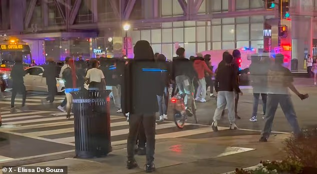 Os adolescentes estavam em paz no início, mas à medida que a noite avançava, “grupos começaram a brigar e a atrapalhar o fluxo do trânsito, ignorando repetidamente as instruções para permanecer na calçada”.