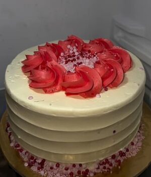No entanto, o preço é cerca de três vezes maior, mas o aborrecimento é baixo, você pode escolher o bolo final do Ripl Ripl, preenchido com três camadas de esponja, creme de framboesa e geléia de framboesa da padaria popular a creme de manteiga branca e rosa.