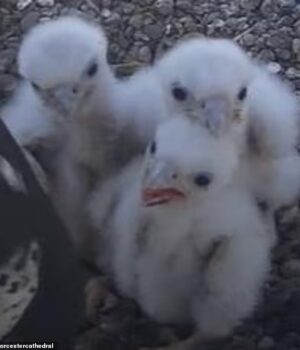Os amantes de pássaros ficaram maravilhados no início deste ano, quando assistiram a três filhotes nascerem com sucesso em uma transmissão ao vivo do YouTube na Catedral de Worcester.