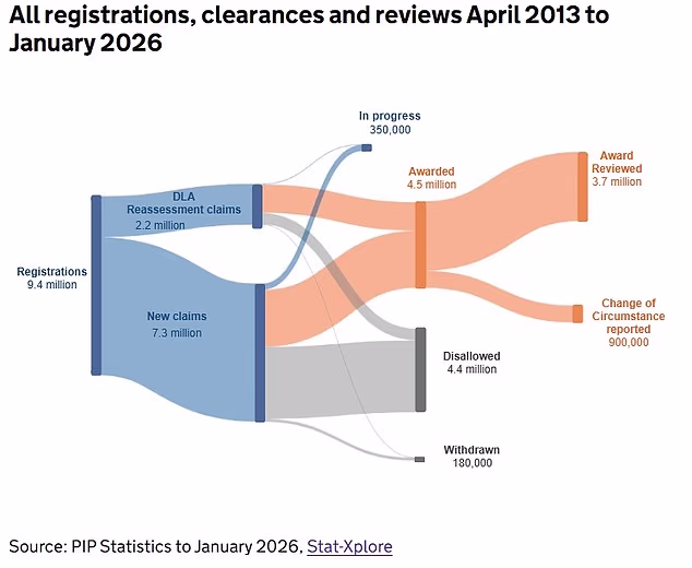 Novos dados do Departamento de Trabalho e Pensões revelaram que 3,9 milhões de requerentes tinham direito a Pagamentos Pessoais Independentes (PIP) em Janeiro deste ano.